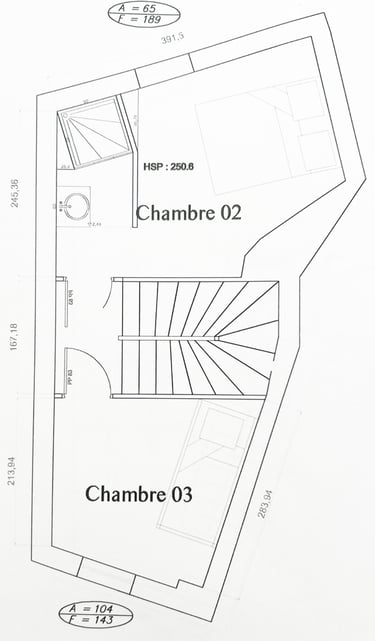 Ce plateau sous combles, marqué par une toiture arrondie et une forte présence de la charpente, offrait un potentiel certain mais de nombreuses contraintes structurelles. L’objectif du projet était de transformer cet espace atypique en un véritable univers parental, complet et intime, tout en tirant parti de la lumière naturelle apportée par les trois vélux de chaque côté.