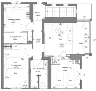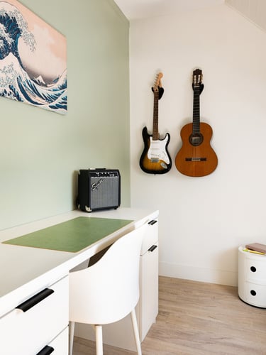 Dans cette belle maison familiale des Hauts-de-Seine, il s'agissait de repenser entièrement l’étage des enfants, devenus adolescents, pour accompagner une nouvelle étape de vie. L’enjeu était clair : créer des espaces affirmés, personnels et inspirants, sans rompre l’harmonie globale de la maison imaginée au fil des années.