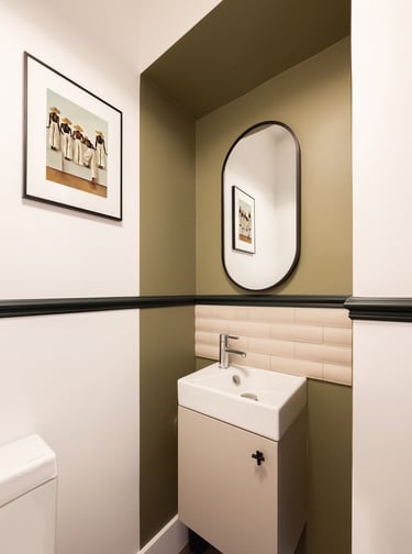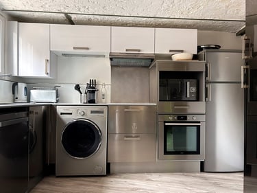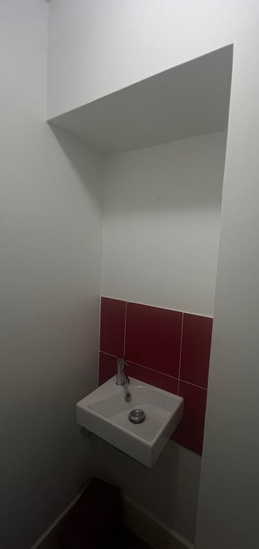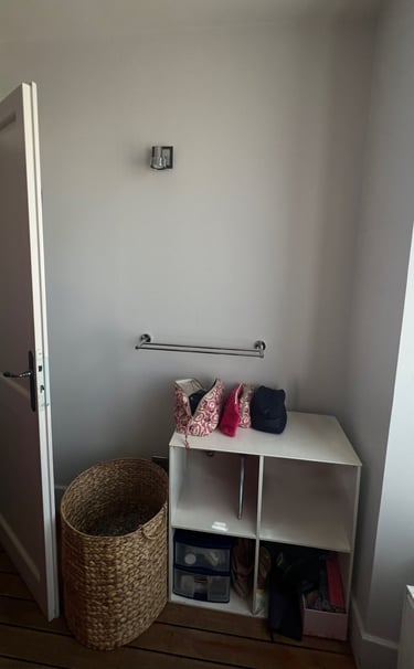 L’espace a été totalement restructuré afin d’optimiser les volumes et les usages. Trois pièces ont été créées pour accueillir un bureau TV, un WC invités et une buanderie. Chaque fonction trouve naturellement sa place, dans une organisation simple et lisible.