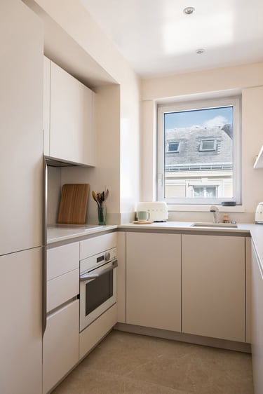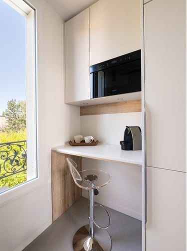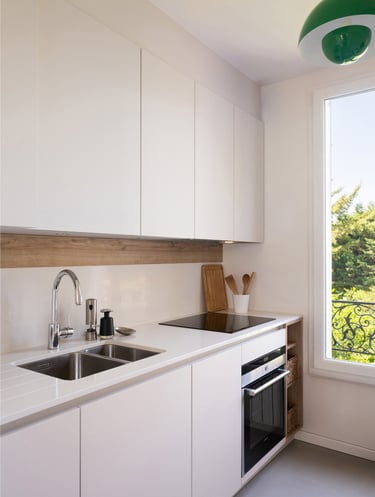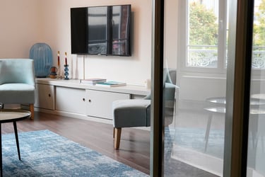 Cet appartement parisien, situé au sein d’une résidence médicalisée, a été entièrement repensé comme un véritable pied-à-terre, confortable et accueillant, pensé pour un couple habitué à partager son temps entre Paris et Cannes. L’objectif du projet était de créer un lieu fonctionnel, fluide et chaleureux, dans lequel se sentir immédiatement chez soi, dès chaque arrivée.