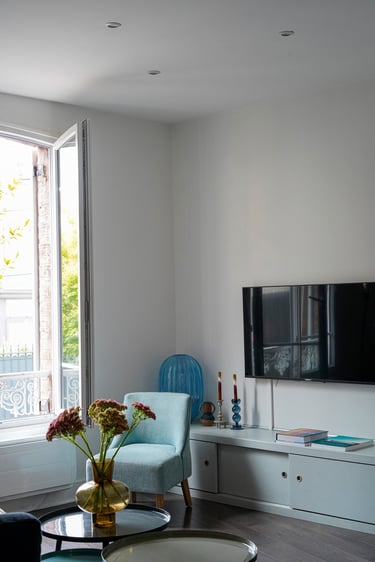 Le résultat est un appartement fonctionnel et rassurant, pensé pour offrir une sensation de familiarité et de confort à chaque séjour parisien.