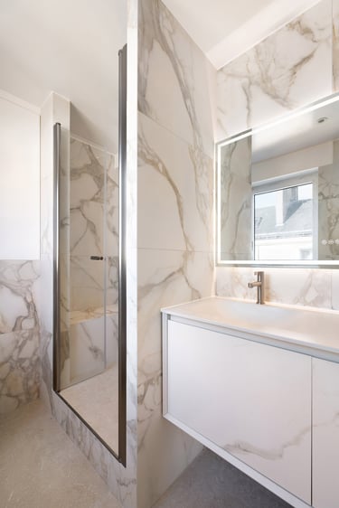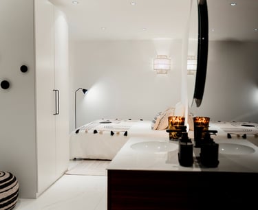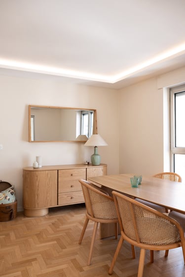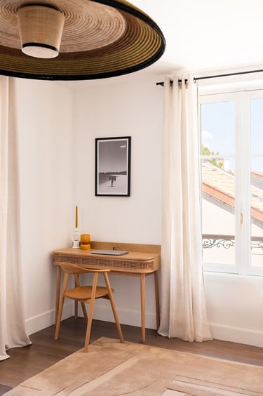 Il s'agissait de travailler les volumes dans un esprit d’ouverture et de continuité, en laissant circuler la lumière et les usages. Les lignes architecturales existantes ont été respectées et épurées, pour renforcer la sensation d’espace et de simplicité maîtrisée. Les matériaux naturels, les teintes claires et les textures douces installent une atmosphère apaisée, presque instinctive.