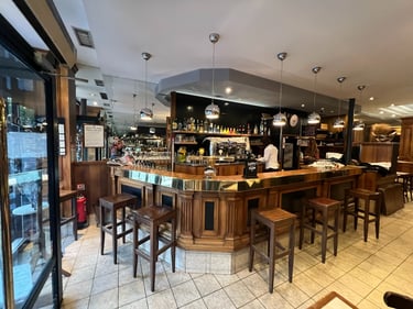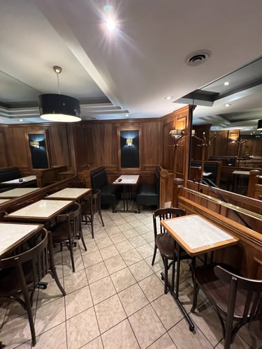 Ce restaurant parisien de type brasserie souffrait d’un manque de cohérence : espaces encombrés, lumière peu flatteuse, acoustique agressive. L’enjeu était de remettre de l’ordre, du confort et du sens, tout en affirmant une identité forte.