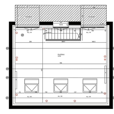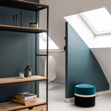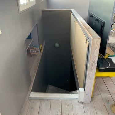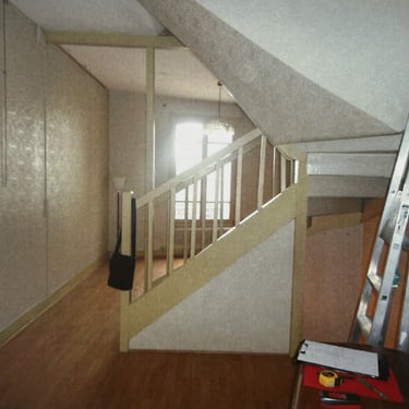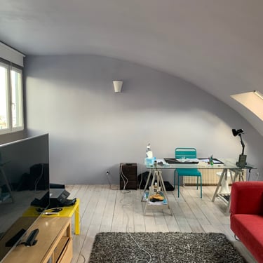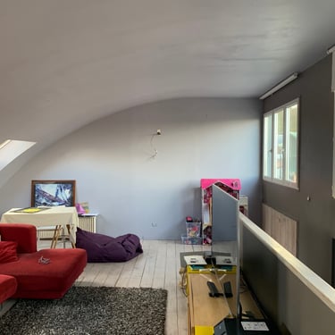 Récemment installée, cette famille disposait d’un plateau de 40m2 sous combles, avec 6 fenêtres doubles et un plafond en voute courbe. L'accès au plateau se faisait par un escalier ouvert.