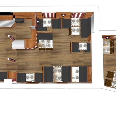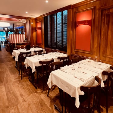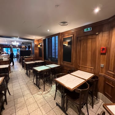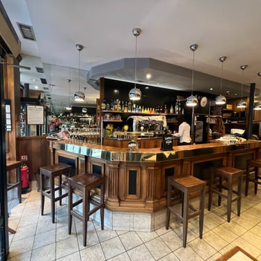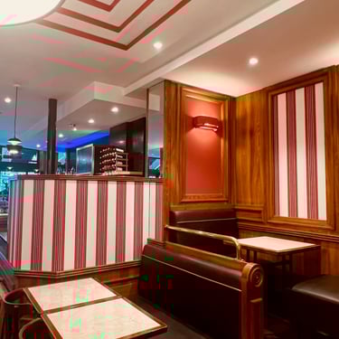 Un père et sa fille restaurateurs souhaitaient rénover leur brasserie. C'était l'occasion d'asseoir l'esprit de cette maison familiale en créant du lien avec leur autre établissement, italien, situé juste à côté.