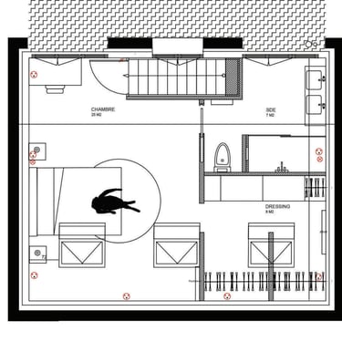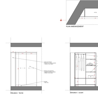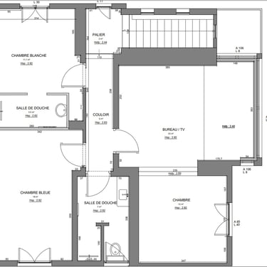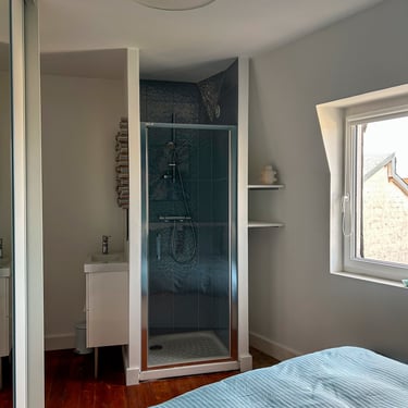 Les clients souhaitaient le transformer en chambre parentale avec un accès fermé. Le projet finalisé leur a permis de disposer d'un véritable espace parental avec chambre, salle de douche/ WC, dressing et la possibilité d'y disposer un bureau.