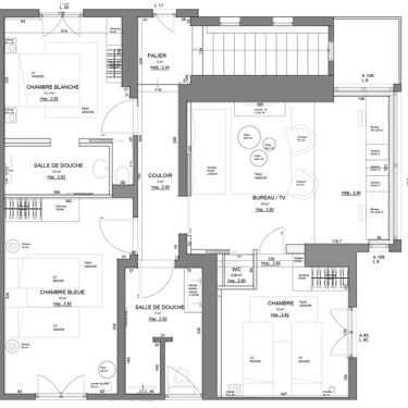 Ce projet consistait à rénover l’ensemble de la maison, en intégrant un espace dressing, un espace télé-travail, et en créant une chambre et deux WC supplémentaires.