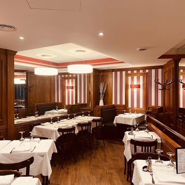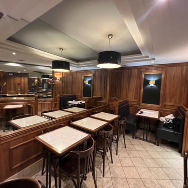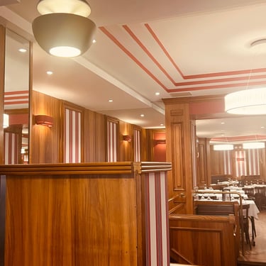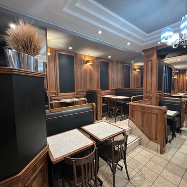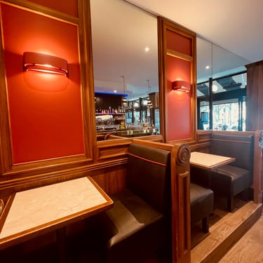 L'enjeu était d'exploiter l'existant en mettant en lumière certains éléments forts : le bar, les box en bois et les grands miroirs. Les souligner par des codes rétro, signature des brasseries parisiennes, tout en insufflant de la modernité.