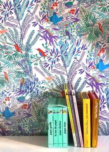 Respectivement illustratrice et designer, Alice Ricard et Camille Bazil, se rencontrent en 2003 sur les bancs de l’école Penninghen à Paris. Elles se retrouvent dix ans plus tard animées par une profonde envie de bousculer les codes de la chambre d’enfant. Elles fondent Little Cabari et créent des papiers peints joyeux et espiègles. Petits et grands sont séduits.